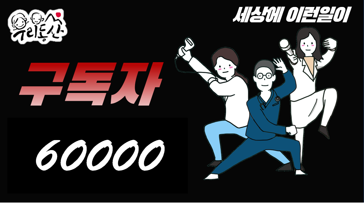 안녕하세요. 우리 동산의 마스코트 우동이 입니다. 2020년 1월 31일 구독자 5만 명을 달성하고 50여 일 만에 구독자 6만 명을 달성하였습니다!! 정확하고 건강한 정보를 재미있게 드리기 위해 시작한 저희 채널이 이만큼 성장했다는 것이 매우 기쁘네요.