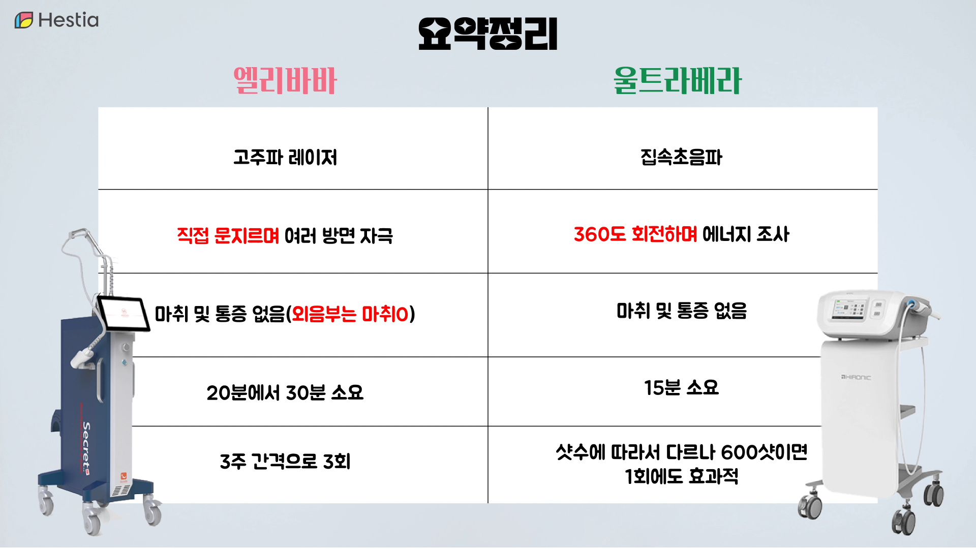 울트라베라 역시도 통증이 없기 때문에 마취가 따로 필요하지 않아요. 엘리바바 같은 경우에는 20분에서 30분 정도 시술시간을 소유하고 질세라 같은 경우에는 한 15분 정도의 소요시간이 필요해요. VT 즉 엘리바바 같은 경우에는 3주 간격으로 3회를 했을 때 가장 좋은 효과를 볼 수 있다고 설명을 드리고 있어요. 집속초음파인 질세라 같은 경우에는 샷수에 따라서 효과를 달리 보게 되는데 600샷 정도까지는 한 번만에 효과를 볼 수 있는 장점도 있어요.