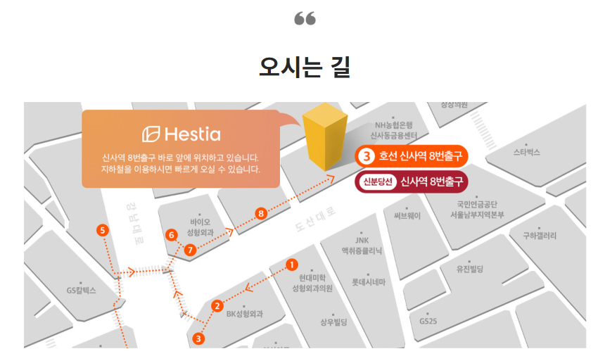 We invite you to visit our Hestia locations in Sinsa (main branch), Bundang, Dangsan, and Dongtan, where you’ll find skilled, attentive, and compassionate care.